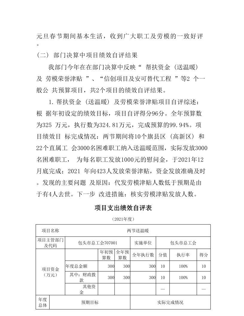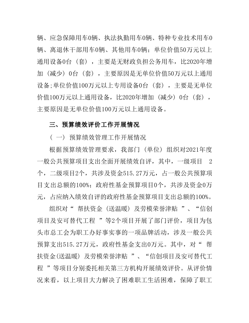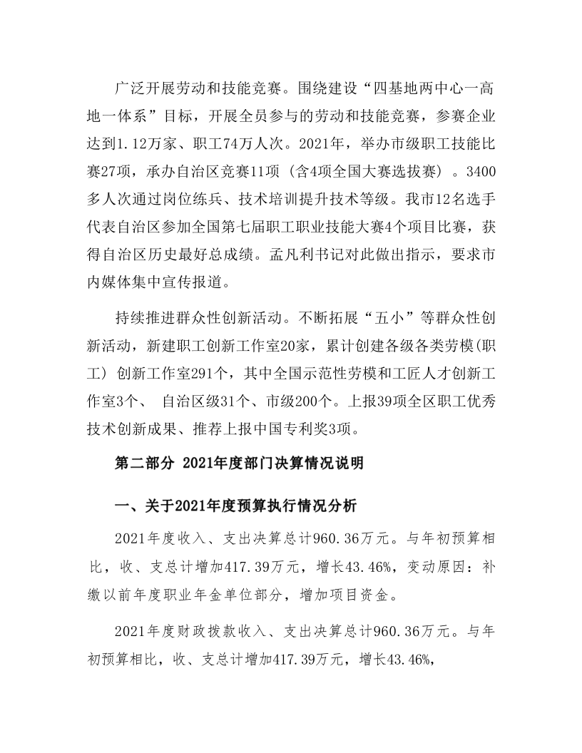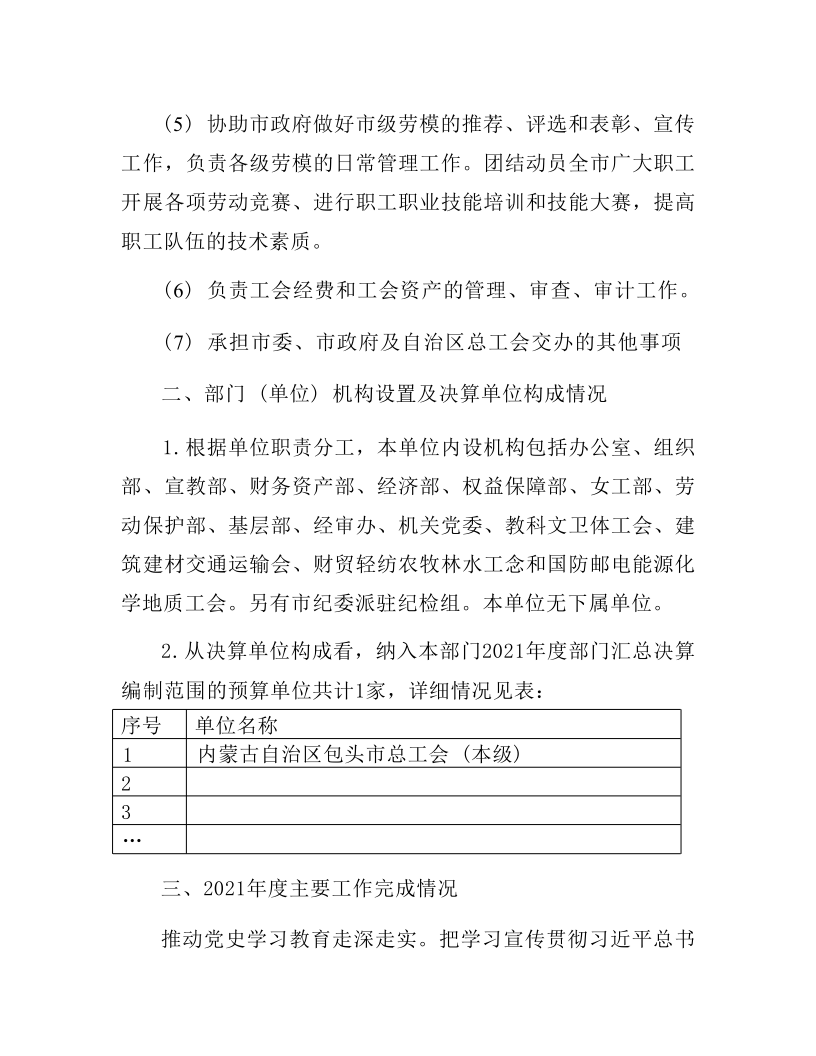 内蒙古自治区包头市总工会部门2021年度决算公开报告