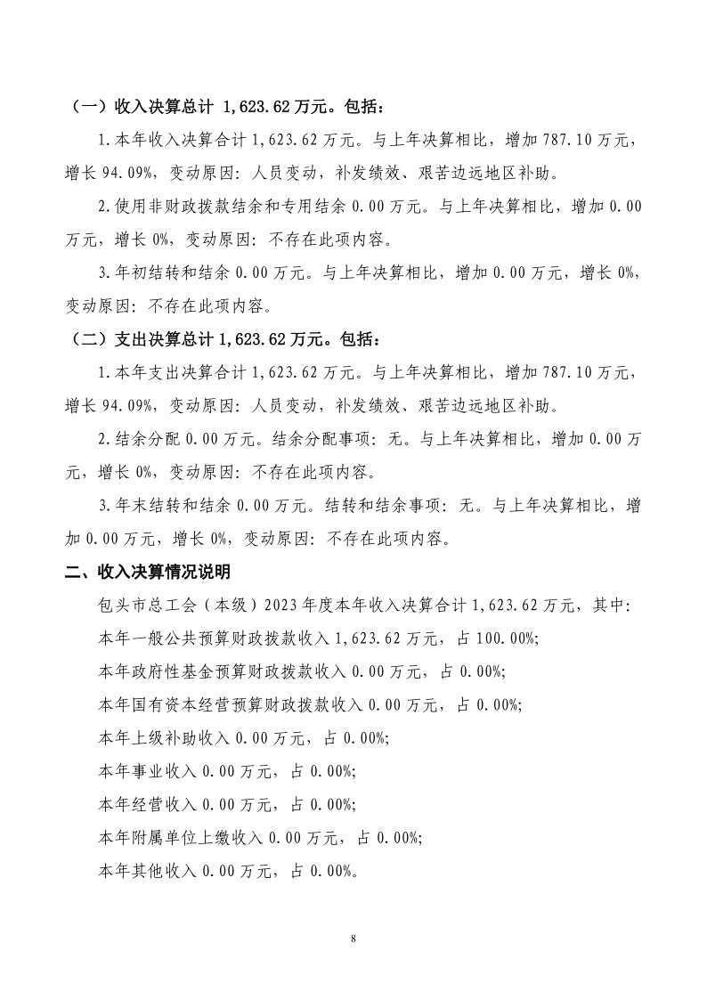 2023 年度包头市总工会(本级) 决算公开