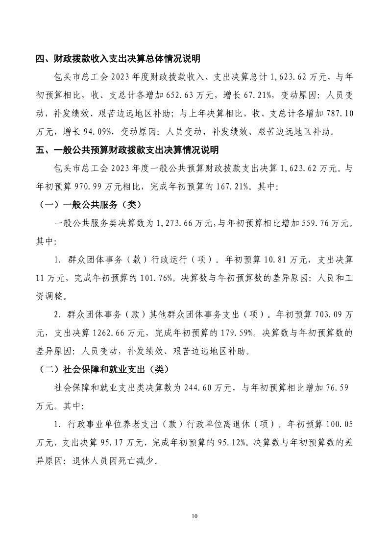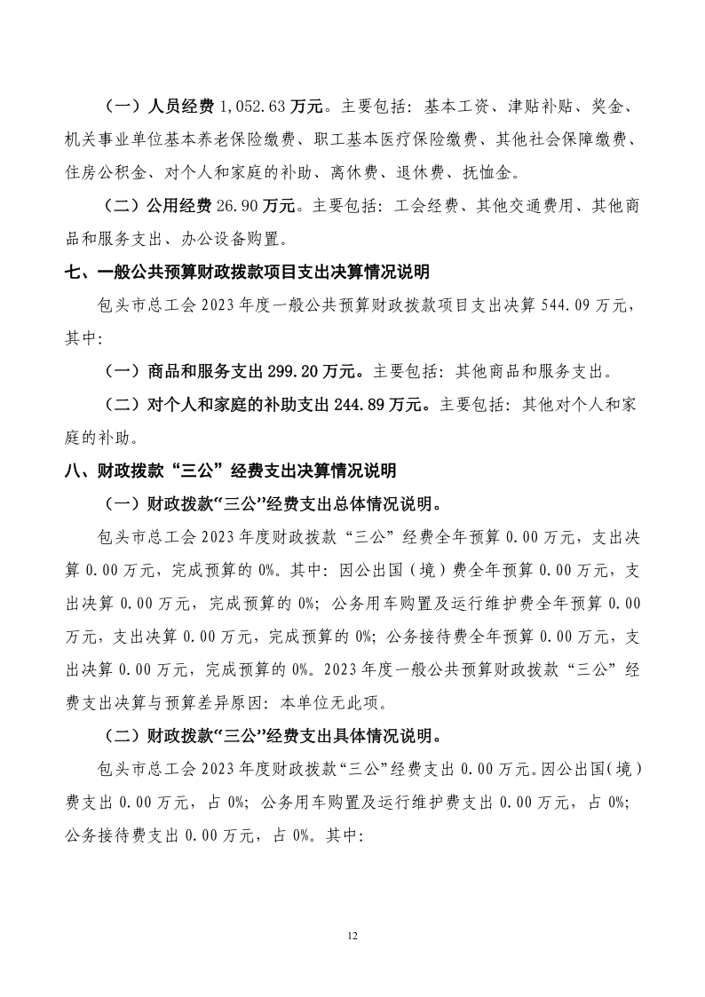 2023 年度包头市总工会(部门) 决算公开