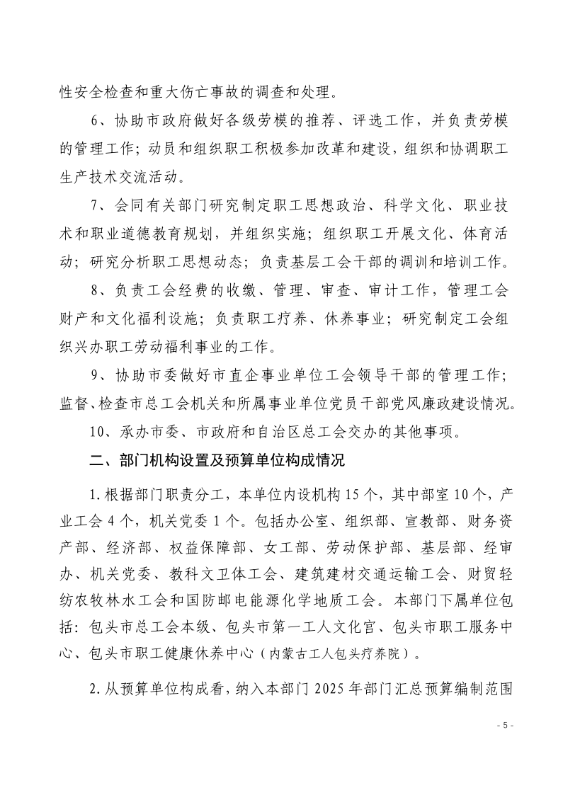 上一篇: 2025年度包头市总工会预算公开 下一篇: 2025 年度包头市职工健康休养中心(内蒙古 工人包...