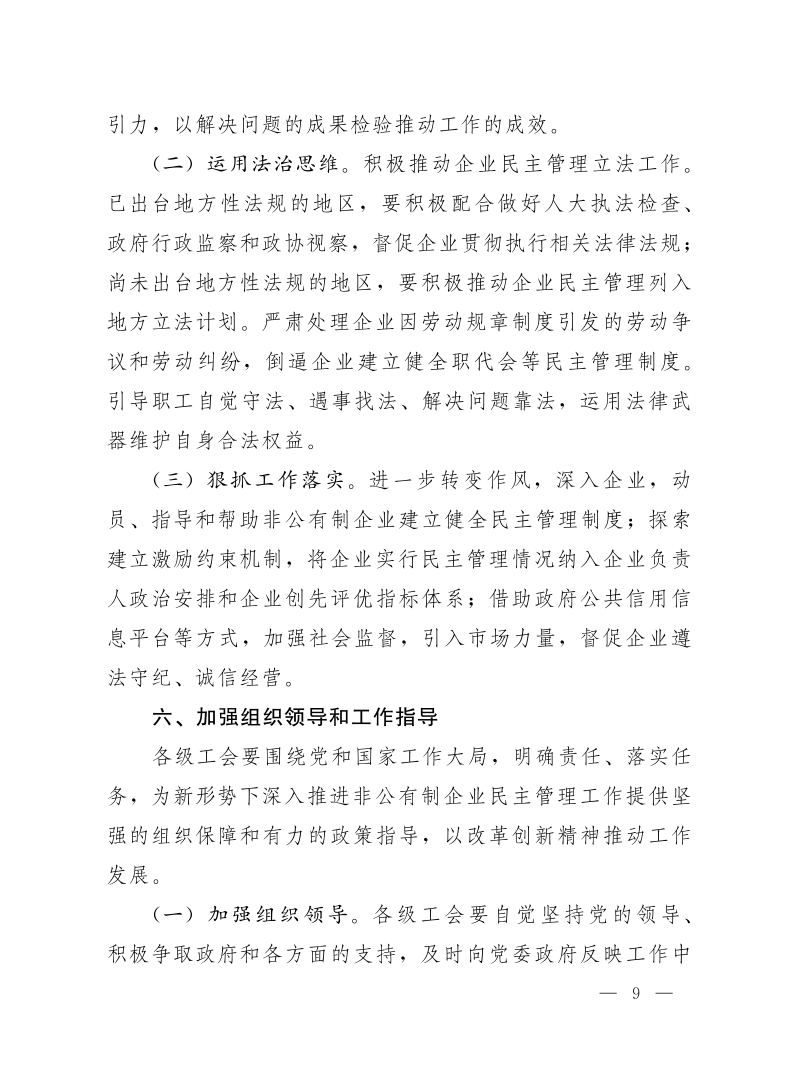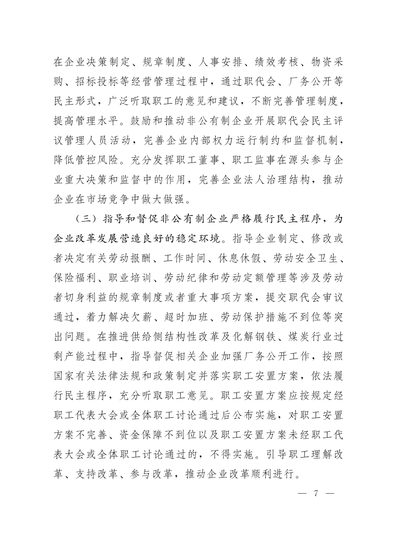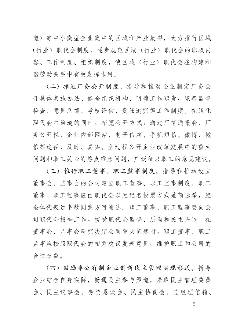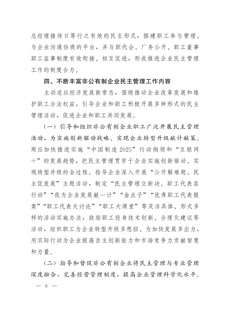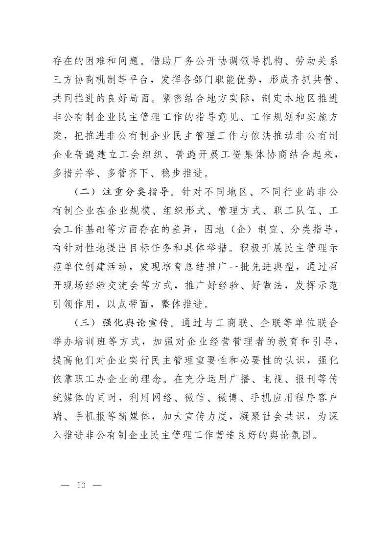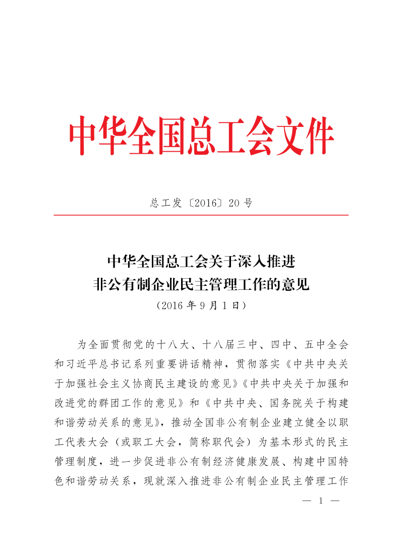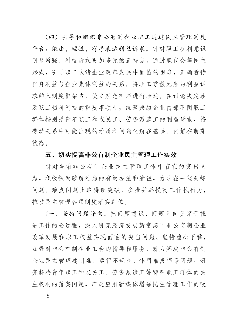 中华全国总工会关于深入推进非公有制企业民主管理工作的意见