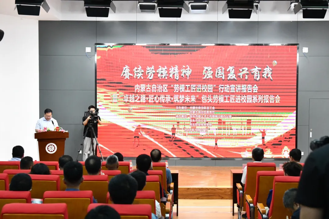 5月31日,由自治区总工会、自治区教育厅主办,市人才办、市总工会、包头职业技术学院承办的赓续劳模精神 强国复兴有我”内蒙古自治区“劳模工匠进校园”行动宣讲报告会暨“卓越之路·匠心传承·筑梦末来”包头劳模工匠进校园系列报告会在包头职业技术学院兵工报告厅举办。