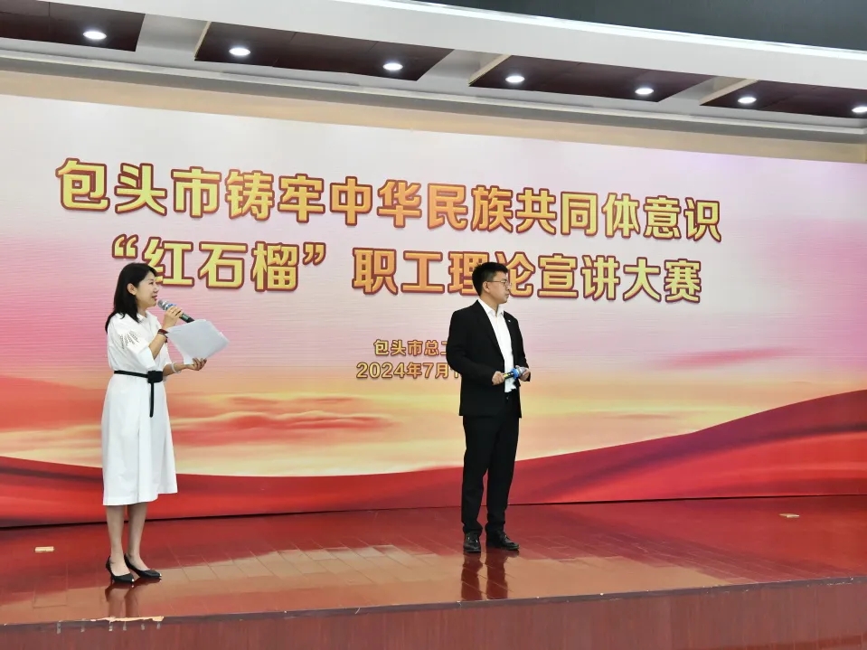 7月18日,市总工会举办了包头市铸牢中华民族共同体意识“红石榴”职工理论宣讲大赛决赛。市总工会有关领导出席活动,机关二支部全体党员、各基层工会职工等60余人现场观看了比赛。