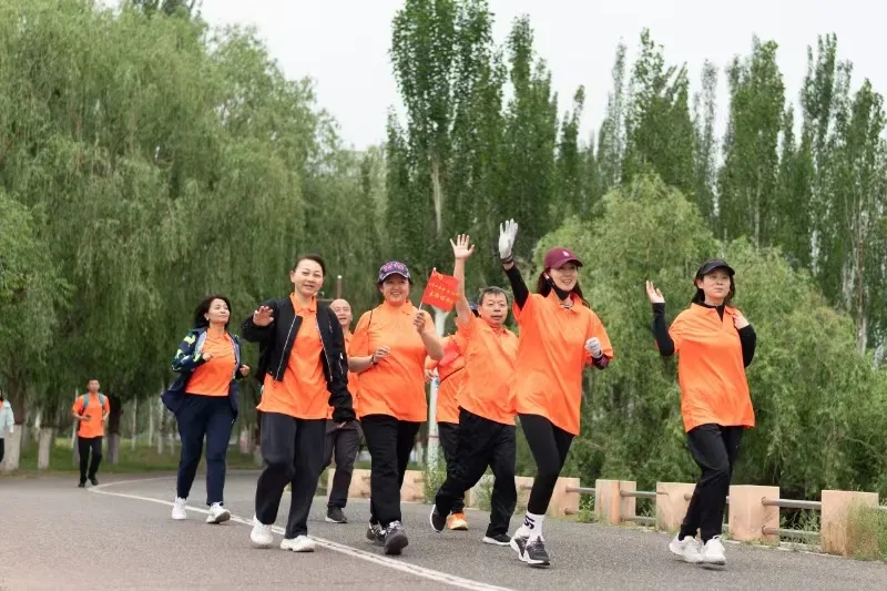 清晨的黄河湿地薄雾氤氲,职工方阵如红色浪潮般集结,随着一声“出发!”的号令,健步走活动正式开始。