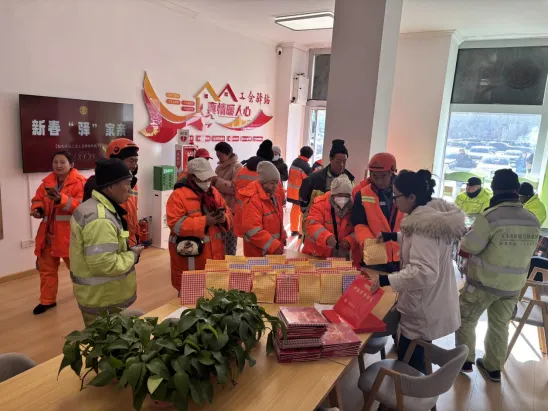 活动现场暖意融融,欢声笑语驱散了冬日的寒凉。工作人员有条不紊地为一线户外劳动者递上暖心礼包和新春对联,一句句“辛苦了”“新年快乐”,传递着工会“娘家人”的深情厚谊。本次活动共为600名户外劳动者送去关怀,礼包内精心搭配了暖姜茶、长效暖贴、柔软毛巾、保湿护手霜等防寒保暖好物,全方位守护户外劳动者的出行与劳作;更贴心附赠了笔墨飘香的新春对联与“福”字,把新春的美好期许与深深祝福,一并送到户外劳动者的心坎上。