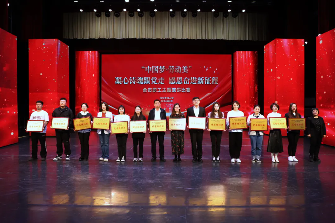 4月17日,市总工会举办了“中国梦·劳动美——凝心铸魂跟党走 感恩奋进新征程”全市职工主题演讲比赛,共有23直属工会上报40个参赛作品,经过精彩演讲和激烈比拼,最终评选出11个一等奖,10个二等奖,10个三等奖,8个优秀奖和15个优秀组织奖。