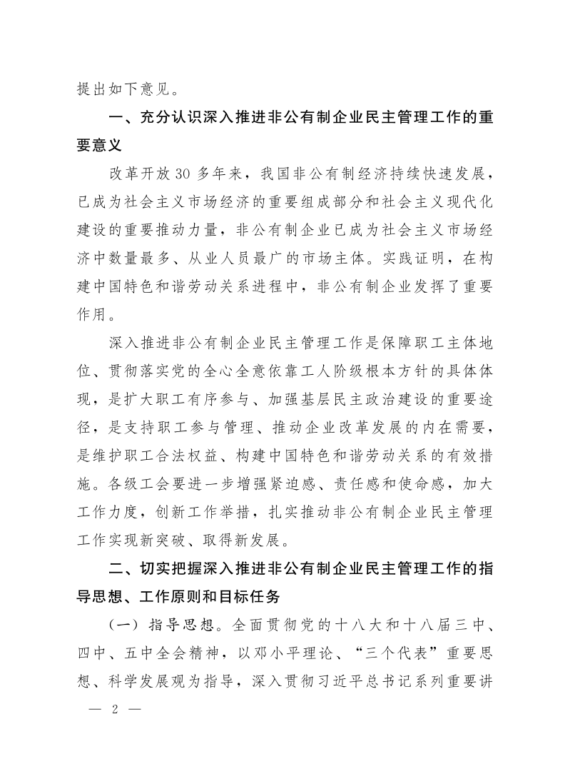 中华全国总工会关于深入推进非公有制企业民主管理工作的意见