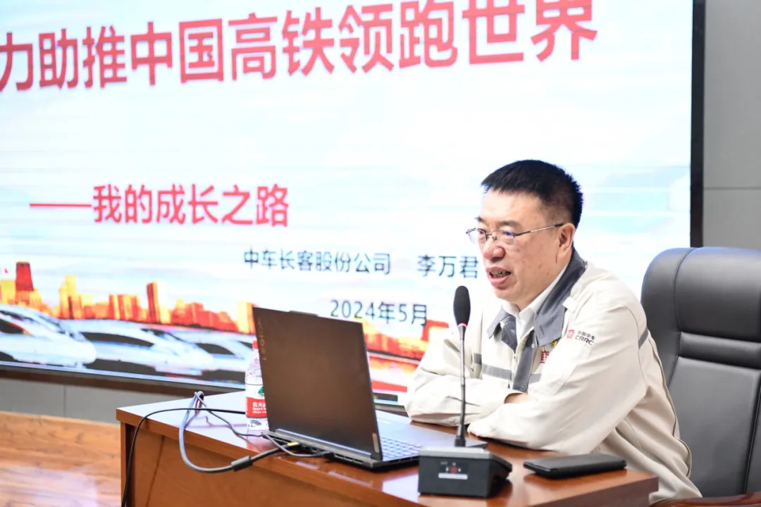 报告会上,“大国工匠”、中车长春轨道客车股份有限公司转向架事业部焊接产线组电焊工李万君以《匠心筑梦 强国有我 用新质生产力助推中国高铁领跑世界——我的成长之路》为题作了宣讲。自1987年在原长春客车厂参加工作以来,李万君凭借着对党的忠诚和对企业的热爱,逐渐从一名普通焊工成长为我国高铁焊接专家,总结并制定“环口焊接七步操作法”等52种转向架焊接规范及操作方法,技术攻关150余项,其中50项获得国家专利,满足了高速动车组、城铁车、出口车等20多种类型的生产需要,代表了中国轨道车辆转向架焊接的世界最高水平。