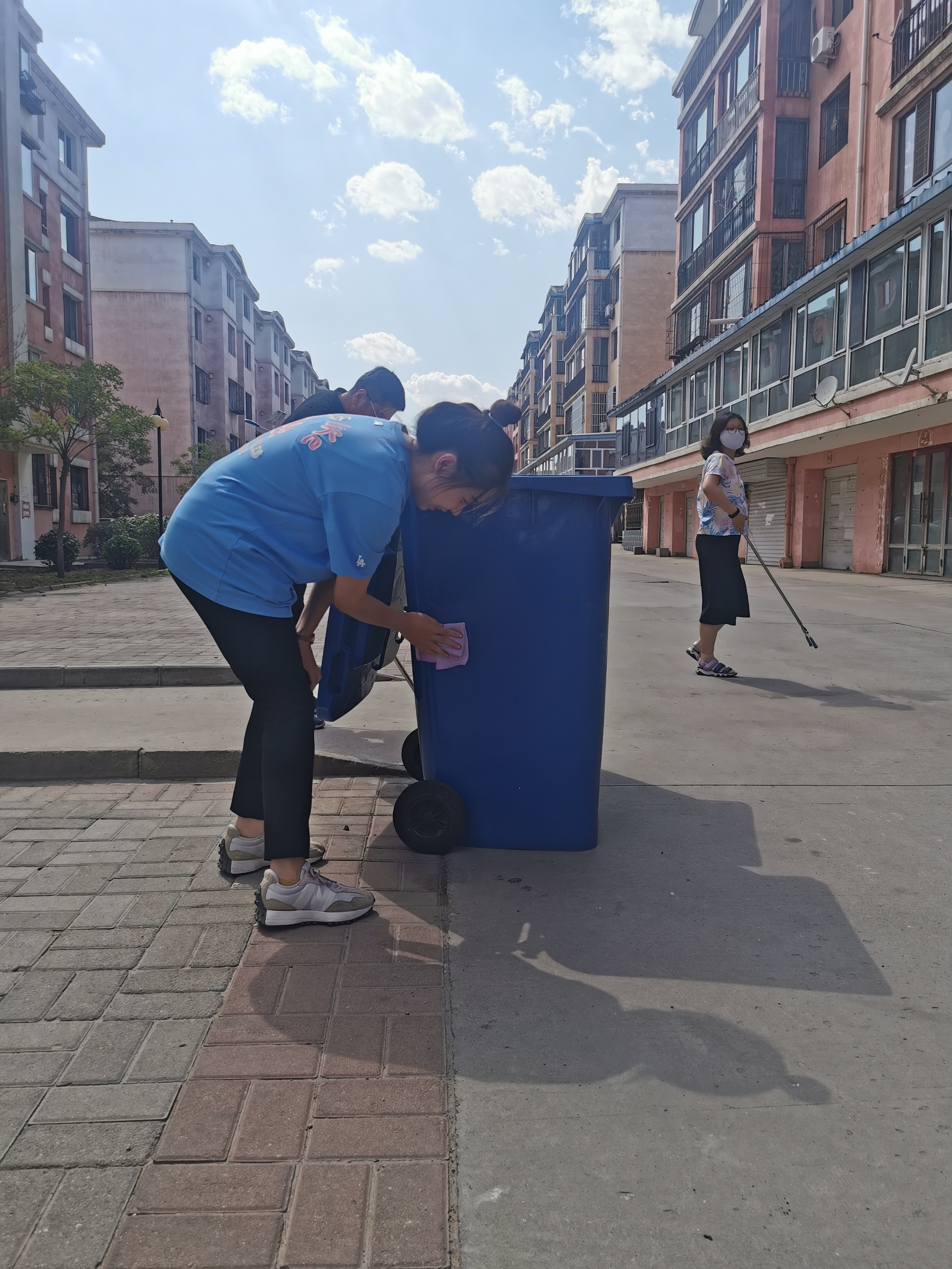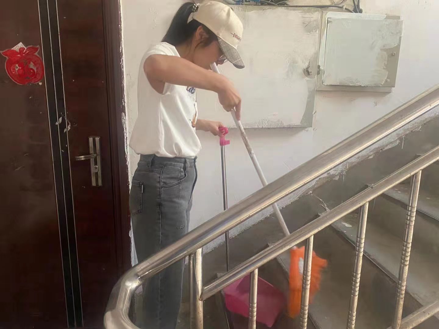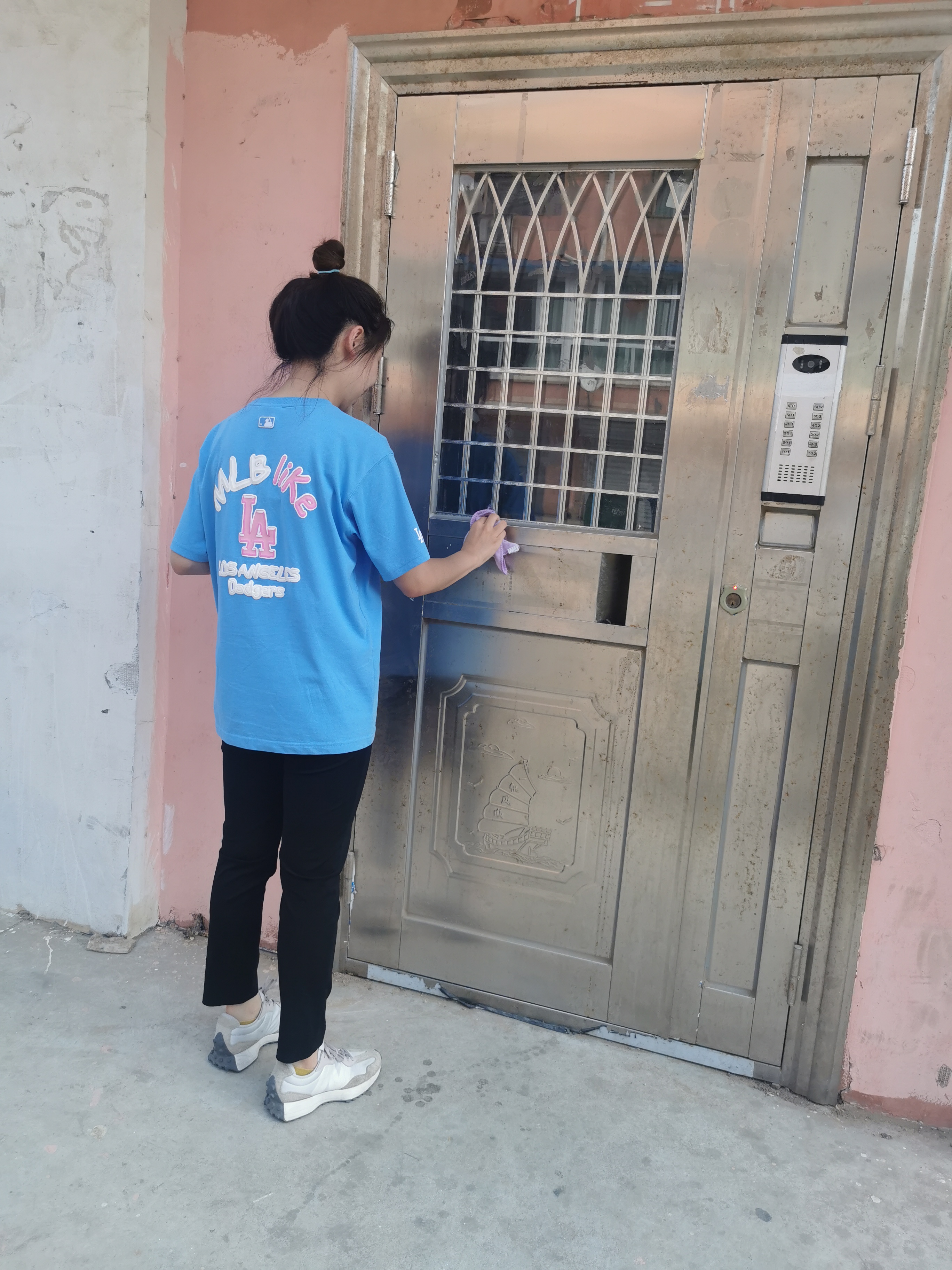 参加志愿服务的团员青年代表顶着炎炎烈日,分组包片,逐栋清扫楼道、擦拭玻璃和垃圾桶等,力争不留死角。通过大家相互配合,经过数小时的清理,高效完成了社区卫生清洁工作,小区环境卫生得到进一步改善。
