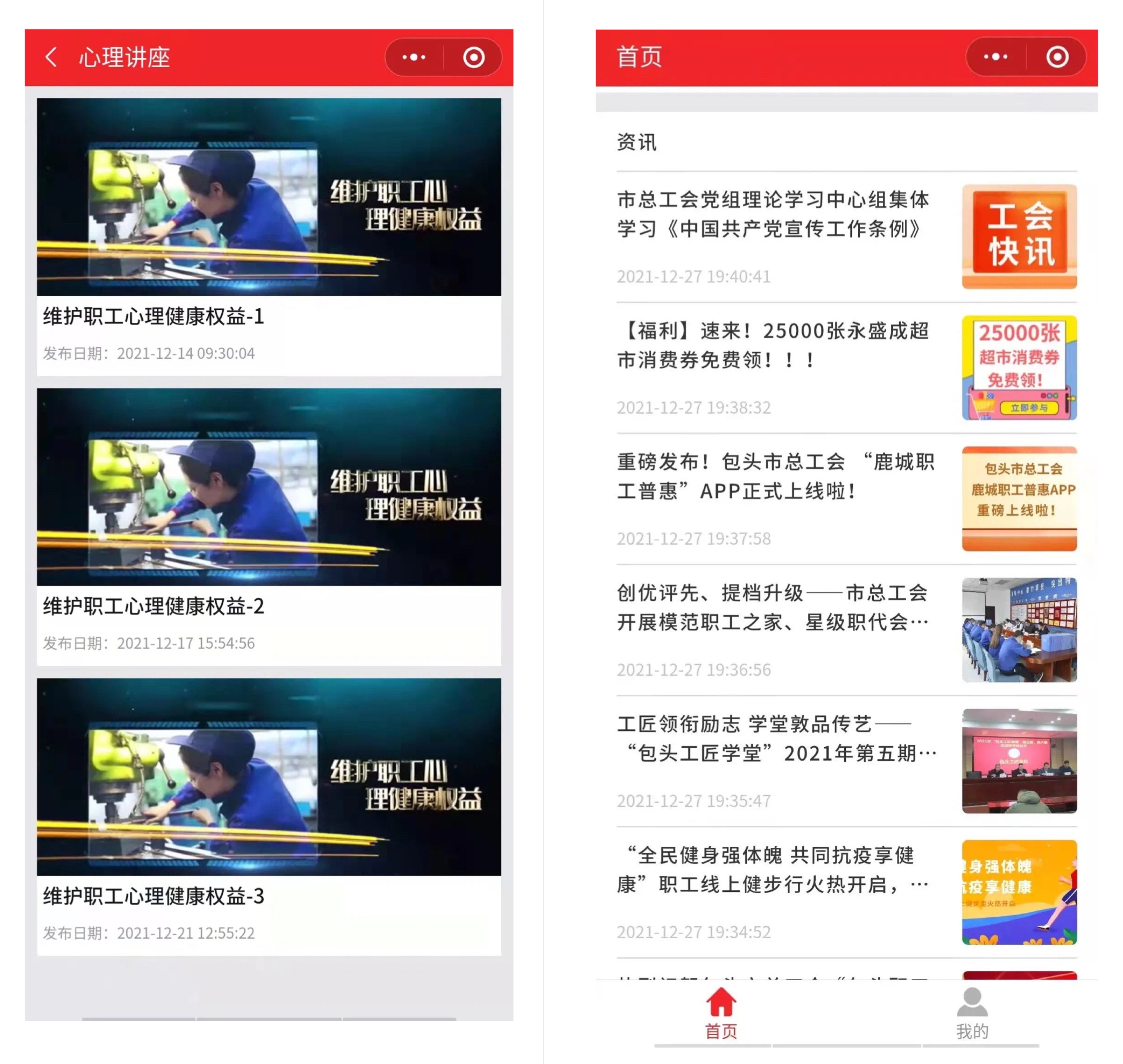⑦在功能板块下方还有“包头职工e家”近期热门资讯供大家阅读。