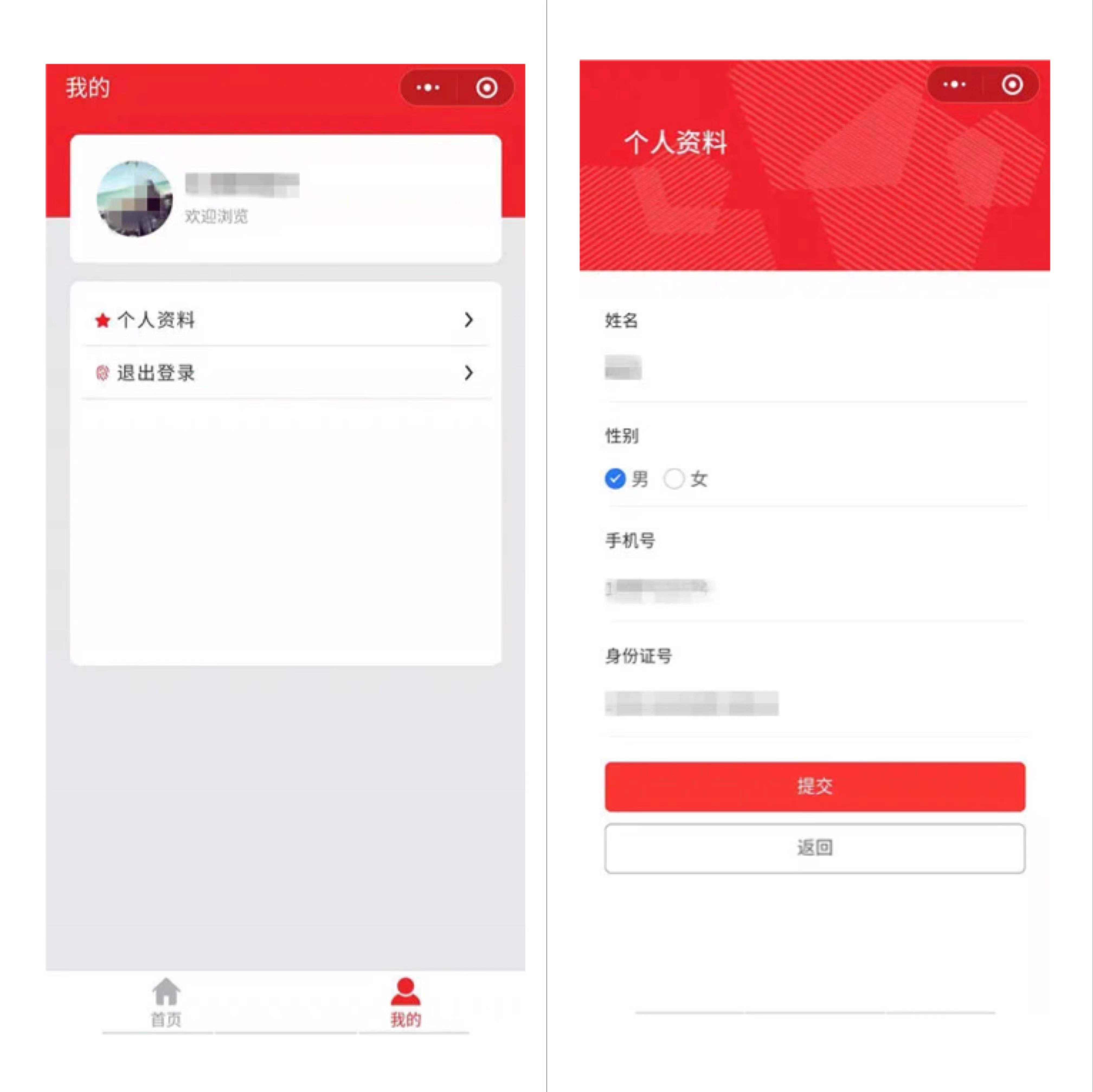 在“我的”个人中心,会员可查看或修改自己的个人资料及退出微信小程序。