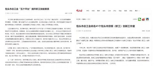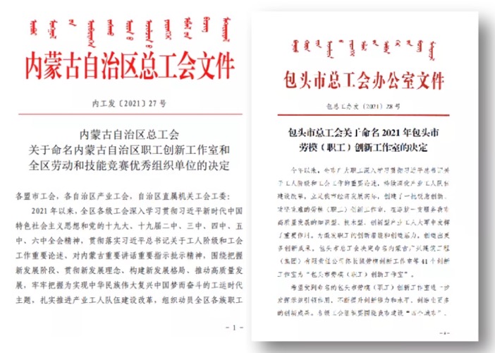 加大职工创新工作室建设力度,新命名市级职工创新工作室41个,2021年3个市级职工(劳模)创新工作室被命名为自治区级。