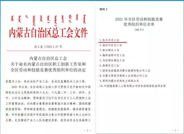 我市12名选手代表自治区参加全国第七届职工职业技能大赛4个项目比赛,4名选手进入全国前二十,最好成绩获得全国第五名,钳工、焊工分获全国团体第7、第8名,是我市和自治区参加全国职工职业技能大赛历史最好成绩。包头市总工会获得2021年度全区劳动和技能竞赛优秀组织单位。