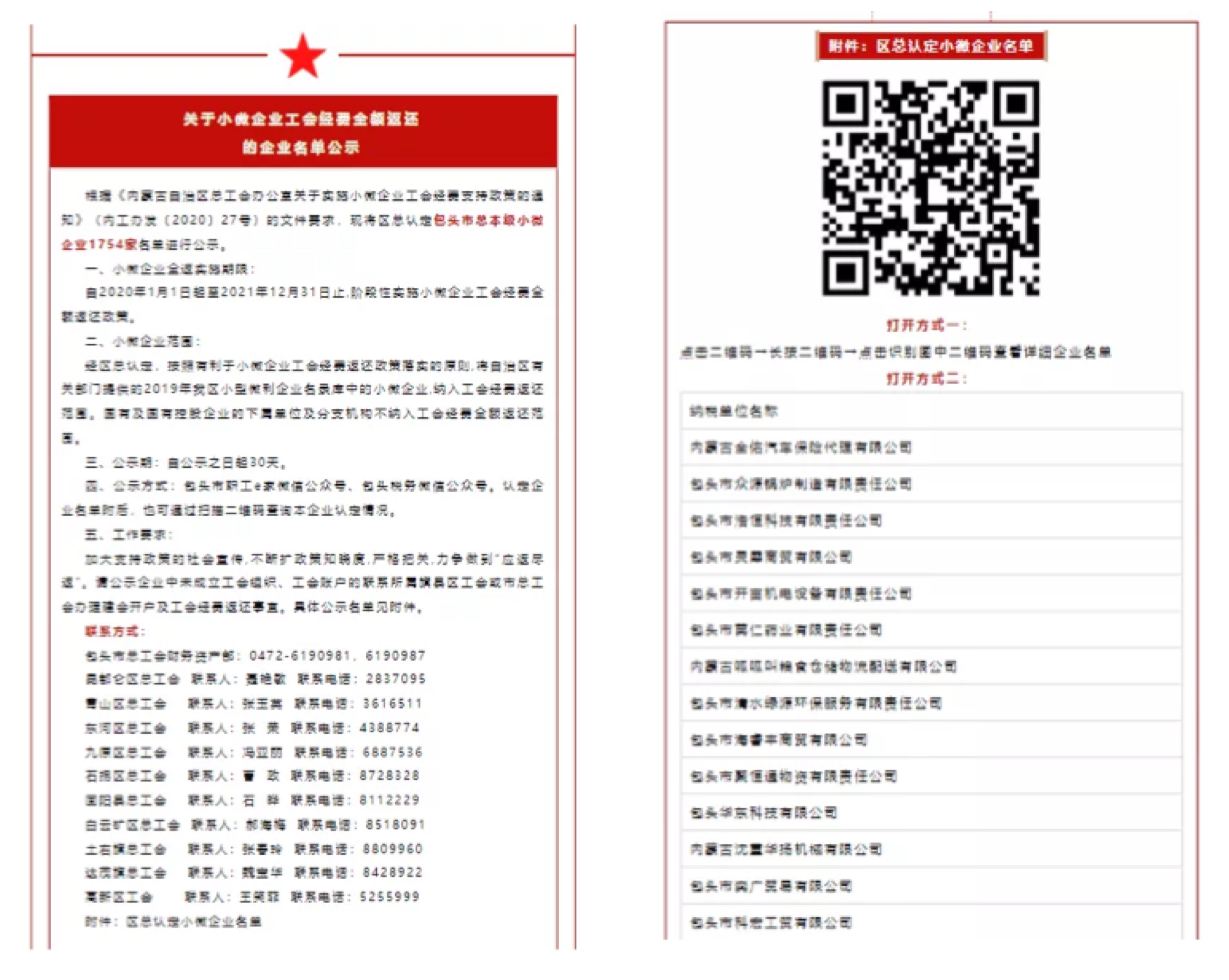 努力减轻小微企业负担,通过包头职工e家、税企云平台和税务服务平台等,公示工会经费返还政策和小微企业名单,提高工会经费返还政策的知晓度。全年全市各级工会组织累计向6470家小微企业返还工会经费2773万元,实现了应返尽返。