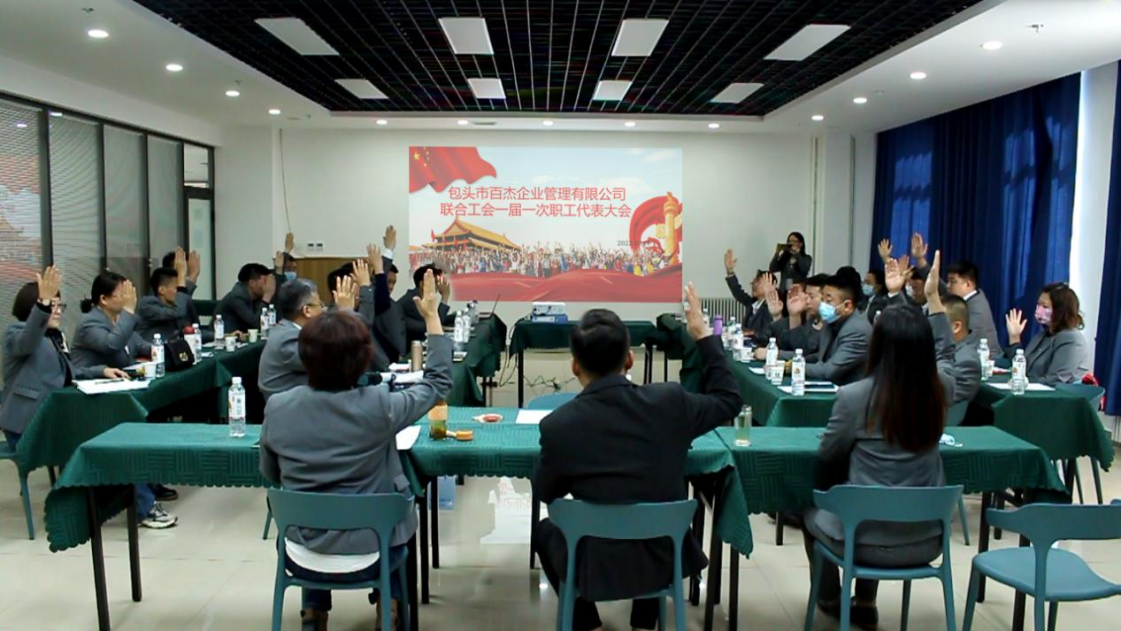 2022年年初,包头市百杰企业管理有限公司(下称百杰公司)就将依法成立党群组织列为了公司全年重点推进的工作内容。经过一段时间的筹备,2022年3月19日,百杰公司工会筹备组召开首届会员代表大会暨一届一次职代会,应到会员代表31名,实到会代表31人。工会筹备组按照《工会法》和《中国工会章程》等有关规定和选举程序,报请属地青山区总工会批复同意,建立了包头市百杰企业管理有限公司联合工会,并选举产生了第一届公司联合工会主席。联合工会有4个组成单位,即包头市百杰企业管理有限公司、百思杰(内蒙古)企业管理有限公司、海科(内蒙古)企业管理有限公司、京准(内蒙古)企业管理有限公司。
