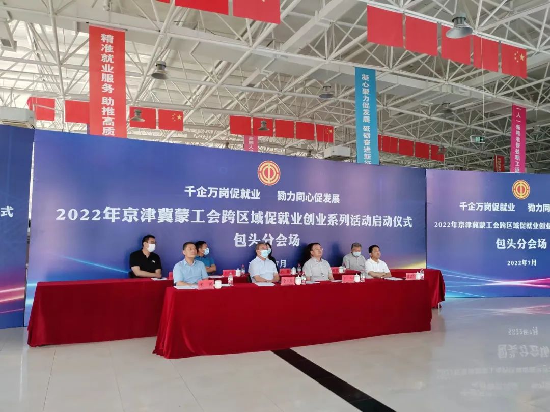 7月31日,“千企万岗促就业 勠力同心促发展”2022年京津冀蒙工会跨区域促就业创业活动启动,我市于中国包头高新技术人才服务中心设立活动分会场同步启动活动,市总工会党组书记、副主席李世明,市总工会党组成员、二级调研员米斌,团市委、市妇联、市工商联、市人才中心、市就业服务中心市人才中心、高新技术人才服务中心相关领导参加了我市的启动仪式。
