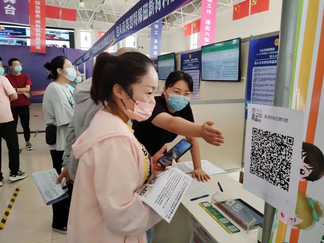 据悉,为贯彻党中央、国务院稳就业保就业决策部署,全面落实中华全国总工会就业服务工作要求,协助自治区党委、政府做好高效统筹疫情防控和经济社会发展、优化营商环境工作。在中华全国总工会指导下,市总工会联合中国包头高新技术人才服务中心,委托内蒙古西部人才(集团)有限公司举办本次活动,活动以现场招聘会+网络视频招聘会+直播带岗的方式同步进行,其中,网络视频招聘会一直持续到8月31日结束,现场招聘会参会企业48家,提供就业岗位3899个,入场人数453人,初步达成就业意向113人,同时有多数求职人员加入了企业的求职群进行后续继续对接。市总工会现场还派驻两位律师,为参加招聘的企业代表和求职者们提供《工会法》《劳动法律监督条例》《劳动合同法》等保障职工合法权益的法律法规及有关政策的讲解服务,就求职者提出的具体问题提供了咨询解答,现场发放普法宣传资料340余份。