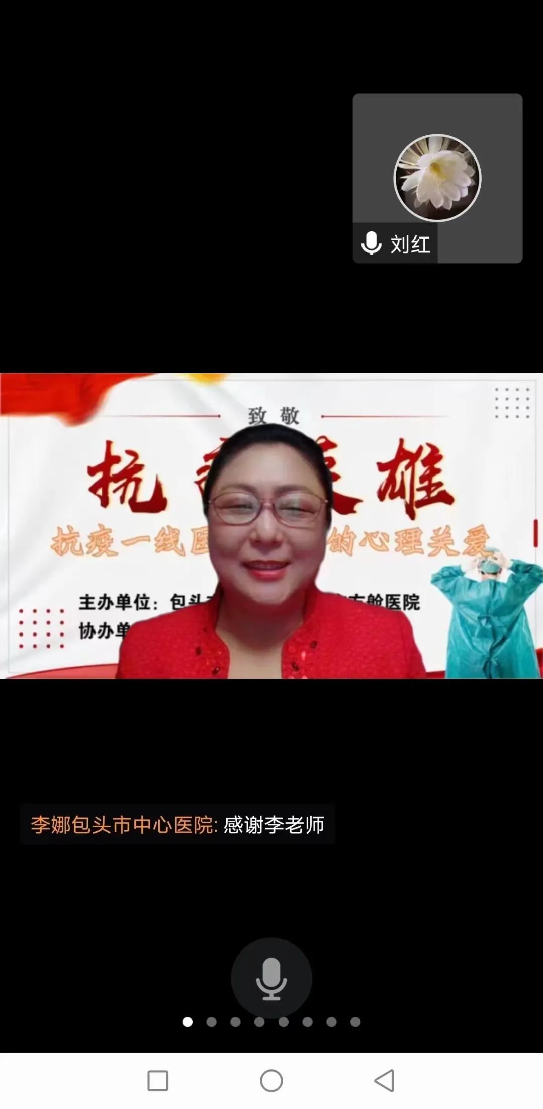 在一个半小时的视频讲座中,李红霞老师从关注和重视、承认和接纳、分析和解读、调节和转化四个角度分析了工作压力的产生原因及应对方法,在讲座的同时,李老师也同医护人员进行了互动交流,提供了包括科学释放法等6种调节情绪,释放压力,自我心理疗愈的方法。讲座最后,李红霞老师向所有医护人员在抗击疫情工作中所付出的努力表示了感谢。通过讲座,医护人员表示受益匪浅,缓解了压力,更有信心做好疫情防控工作。