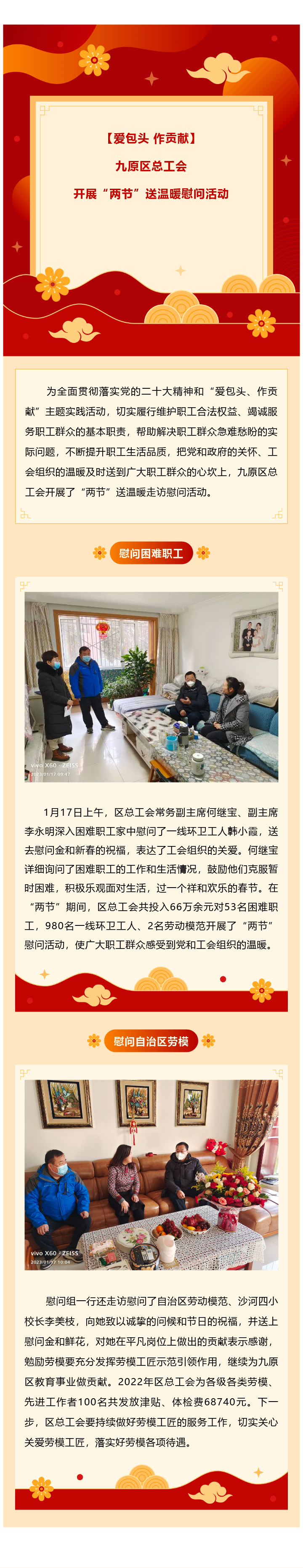 爱包头 作贡献 | 九原区总工会开展“两节”送温暖慰问活动