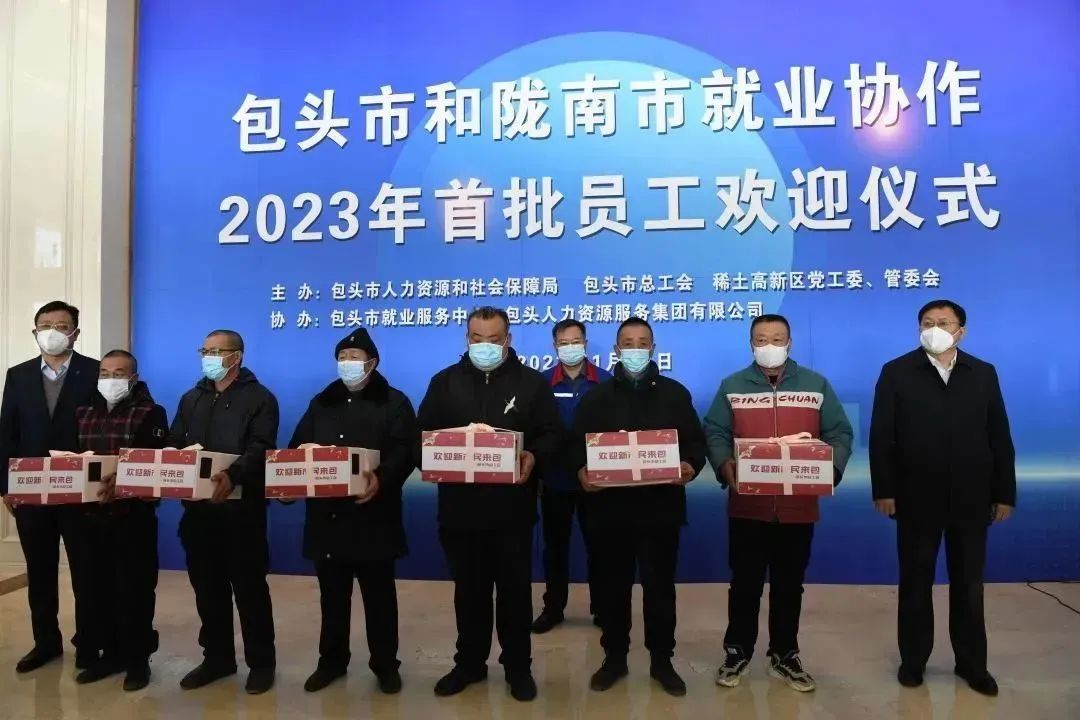 为贯彻落实市委十三届四次全会、“双招双引一优化”动员大会精神和丁绣峰书记关于破解有关企业用工难问题批示精神,充分发挥工会组织联系职工群众的组织优势,1月30日上午,市人社局、市总工会、内蒙古西部人力资源(集团)有限公司在双良硅材料(包头)有限公司举办包头市和陇南市就业协作2023年首批员工欢迎仪式,这同时也开启了2023年市总工会欢迎新市民系列活动的序幕。