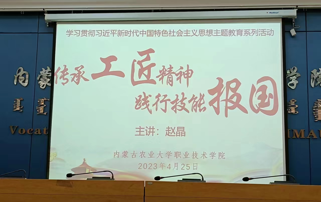 4月25日,赵晶在内蒙古农业大学职业技术学院图书馆报告厅做题为《传承工匠精神 践行技能报国》专题讲座。赵晶就党的二十大精神的相关内容进行了宣讲,并结合自身工作,分享了自己从一名普通职工成长为全国技术能手、中国兵器工业集团首席技师、党的二十大代表的奋斗历程,生动诠释了新时代劳动精神、劳模精神和工匠精神的内涵。对农大职业学院教职工以劳模、工匠为榜样,落实立德树人根本任务,将“劳动精神、劳模精神、工匠精神”全面融入教育教学活动中,感染学生、激励学生,对培养德智体美劳全面发展的社会主义建设者和接班人起到了积极作用。激励学院的莘莘学子坚定不移听党话、跟党走,怀揣报国梦想,脚踏实地敢为人先,努力成为高素质技术技能型人才,为实现中华民族伟大复兴的中国梦而努力学习贡献自己的力量发挥了积极的引领示范作用。