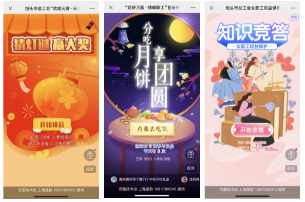 包头市总工会在准确把握新媒体平台特性的前提下不断从平台内容、平台互动性和平台影响三个角度完善”包头职工e家“微信公众号。围绕庆祝新中国成立70周年、改革开放40周年、内蒙古自治区成立70周年、喜迎党的二十大、中国工会十八大等重要时间节点,市总工会运用职工喜闻乐见的宣传形式开展各种宣传,创新利用图文、长图、海报、短视频、H5、知识竞赛、留言互动等多种丰富、生动的传播形式,增加体现工会特色、服务职工的内容,提升推送内容的可读性。今年以来“包头职工e家”在全年节日节点开展了线上知识竞赛、线上互动小游戏等多种线上普惠服务,在宣传正能量和提升职工文化生活品质方面作出了表率,平均每场次活动均超过3000名职工参与,受到了广大职工的热情响应和积极参与。