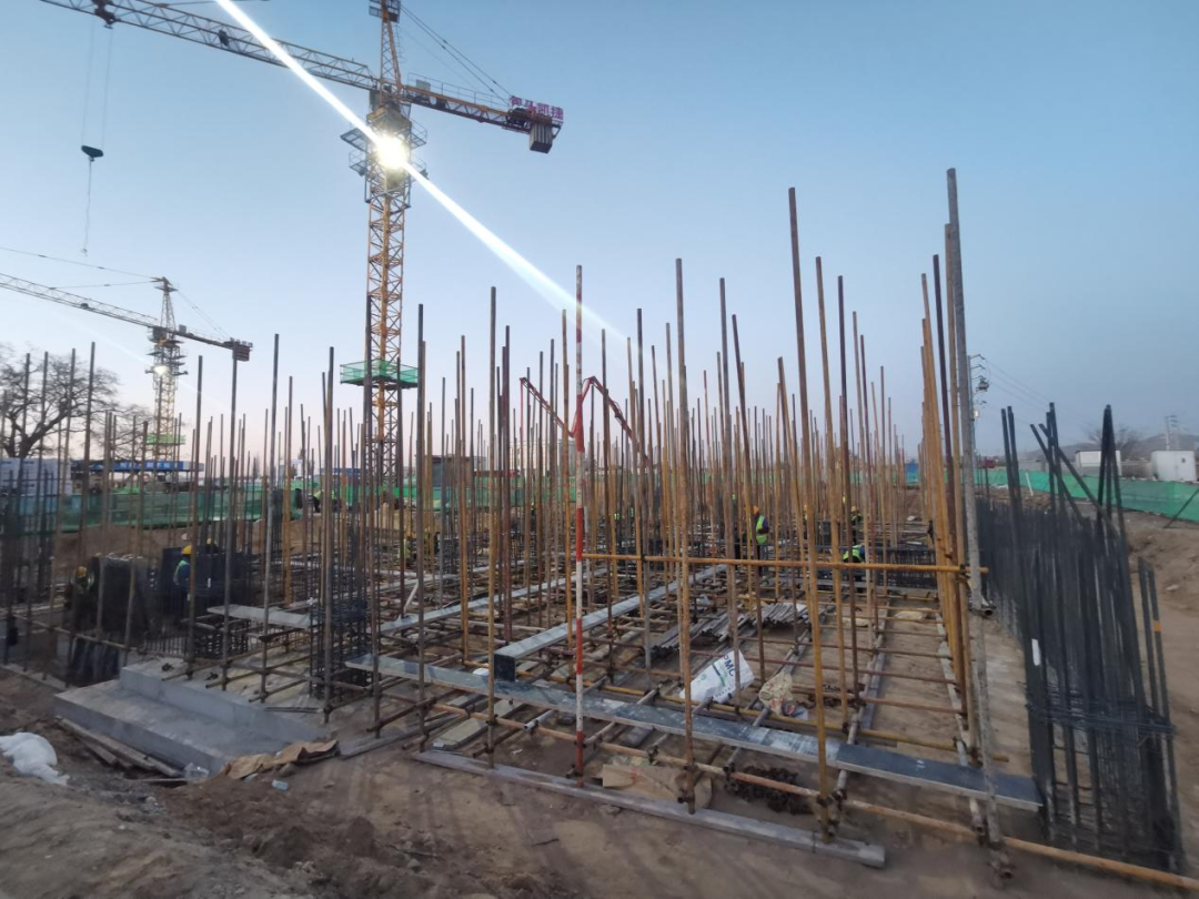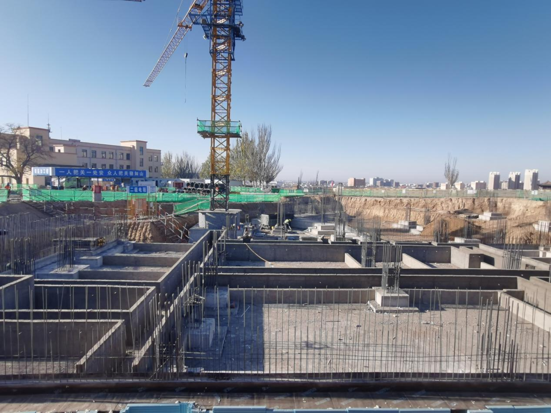 (综合一号楼地下基础完工)