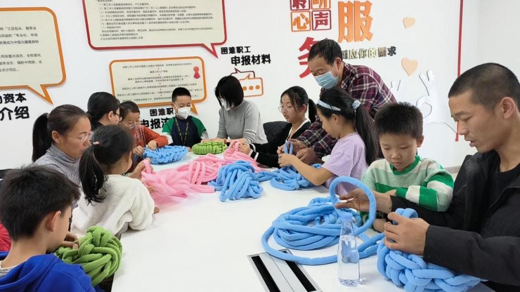 手作编织既是一项技能,也是一种情感的表达。家庭成员之间相互协作,使马卡龙色系的线条在手中穿梭交织,勾勒出的温馨和谐的画面也成为了职工家庭美好的回忆。职工们纷纷表示这次活动非常有意义,不仅能提高孩子们的思考和动手能力,还能让孩子们收获快乐,同时还能拉近亲子关系。