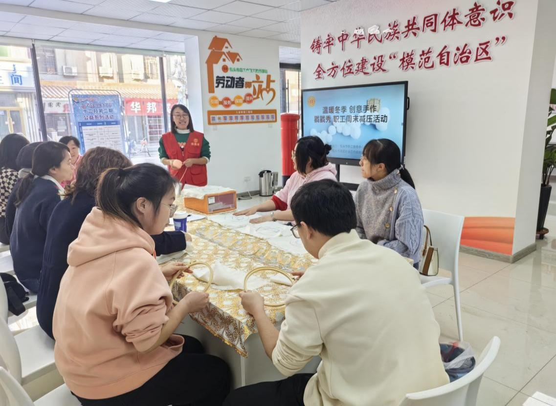 包头市总工会开展“暖冬创意手作--戳戳杯垫体验课”公益活动
