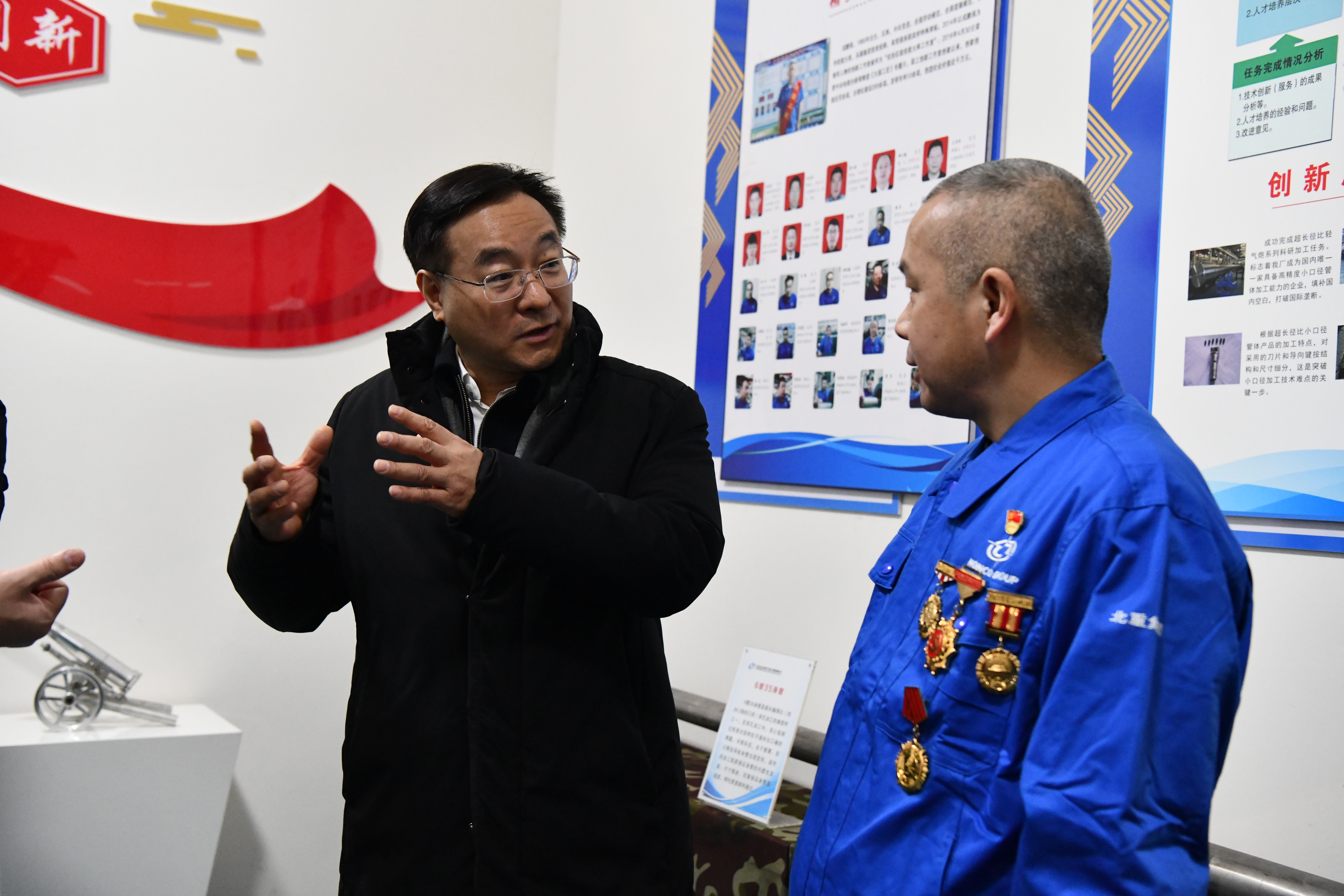 在北重集团,钟洪江一行看望慰问大国工匠、全国劳模戎鹏强,钟洪江对戎鹏强和“戎鹏强劳模创新工作室”在创新创效、锻造队伍等方面取得的成绩给予肯定,勉励戎鹏强同志为代表的各级工匠在岗位上继续发挥示范带头作用,为经济社会发展再建新功,并为他送上慰问物资。鼓励各级工会和企业持续深化产业工人队伍建设改革,充分发挥工人阶级主力军作用,推动全社会形成崇尚劳动、尊重劳动、热爱劳动的良好氛围。