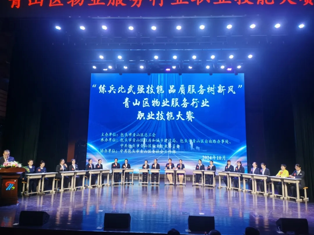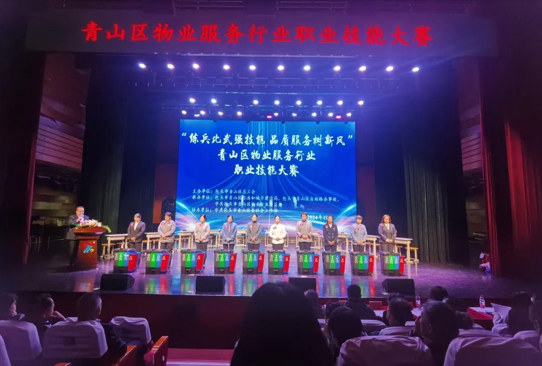 10月22日下午,为全面学习贯彻党的二十届三中全会精神和中国工会十八大精神,大力弘扬劳模精神、劳动精神、工匠精神,充分发挥职业技能竞赛在构建产业工人技能形成体系和创新产业工人发展制度等方面的积极作用,进一步提升物业企业服务水平,激发广大职工立足岗位学技术、练本领的热情,以“练兵比武强技能 品质服务树新风”为主题的技能大赛在青少年发展中心一楼剧场拉开帷幕。
