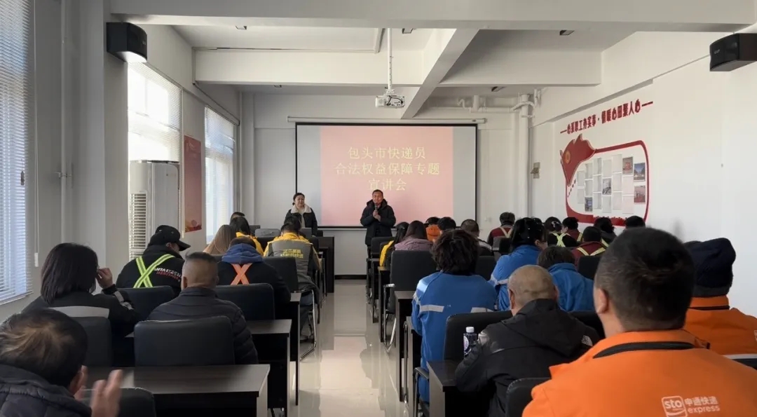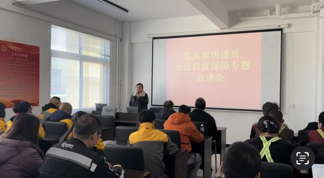 为深入贯彻落实习近平总书记关心关爱“快递小哥”的重要指示批示精神,聚焦一线员工的关心事、操心事、烦心事,切实维护好快递员群体合法权益,按照内蒙古自治区邮政管理局 内蒙古自治区总工会《关于开展2024年“快递员维权宣传月”活动的通知》要求,12月17日上午,包头市总工会、包头市邮政管理局在包头市传化快递物流园区开展了以“畅通维权服务渠道,为快递小哥维权保驾护航”为主题的“快递员维权宣传月”系列活动。