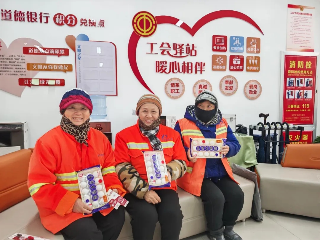 为助力职工顺利返岗,2月14日、21日,市总工会在青山万达、昆区吾悦等工会驿站开展“开启美好 驿站相伴”返岗服务活动。驿站为返岗职工提供热水、热饭、充电等基础服务,并发放“暖心礼包”,内含护手霜、纸巾、口罩等实用物品。外卖骑手小李刚下火车便收到礼包,感慨道:“没想到返岗第一天就感受到‘职工之家’的温暖!”