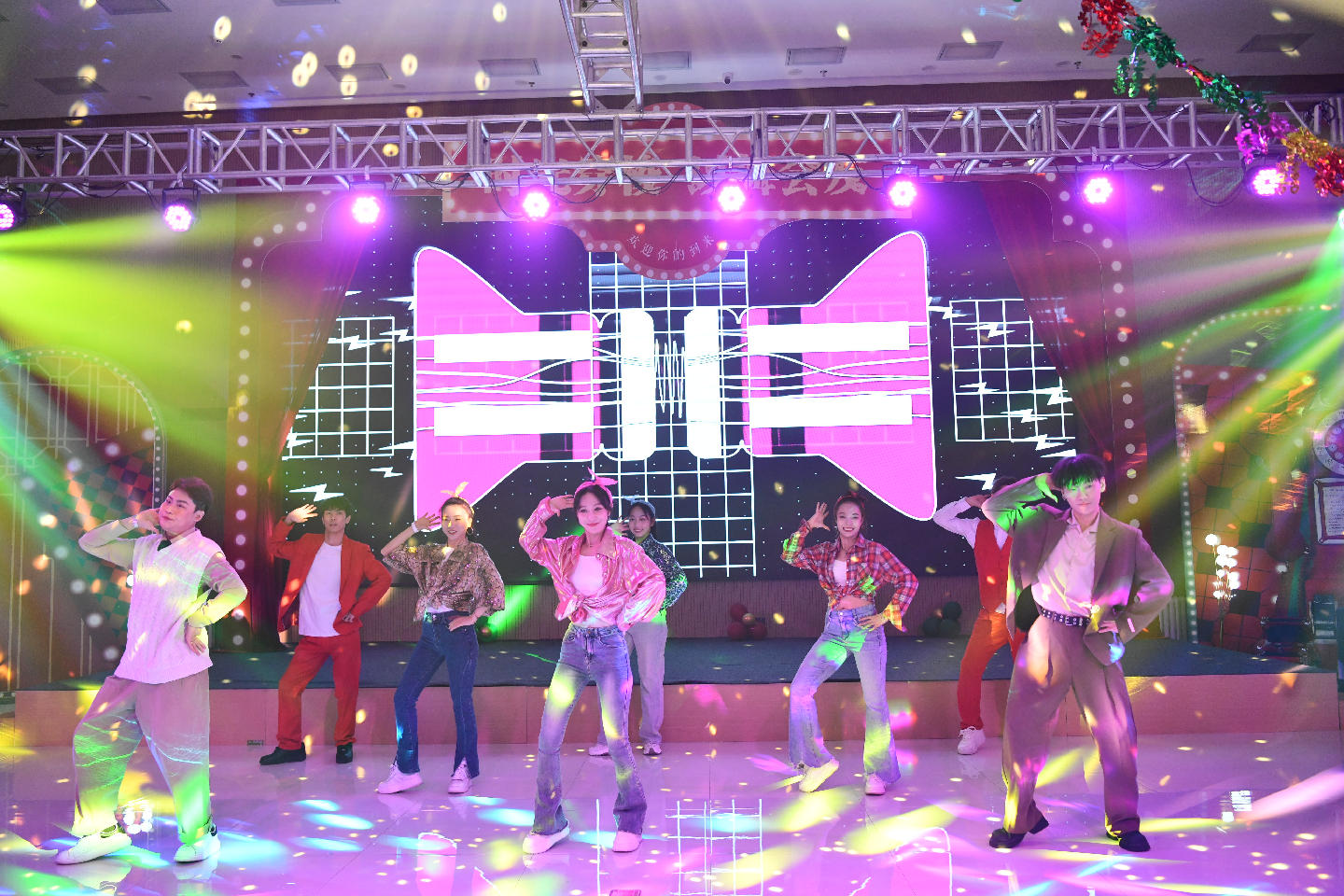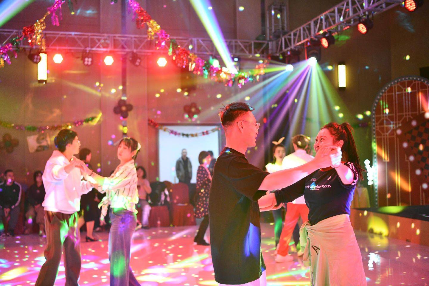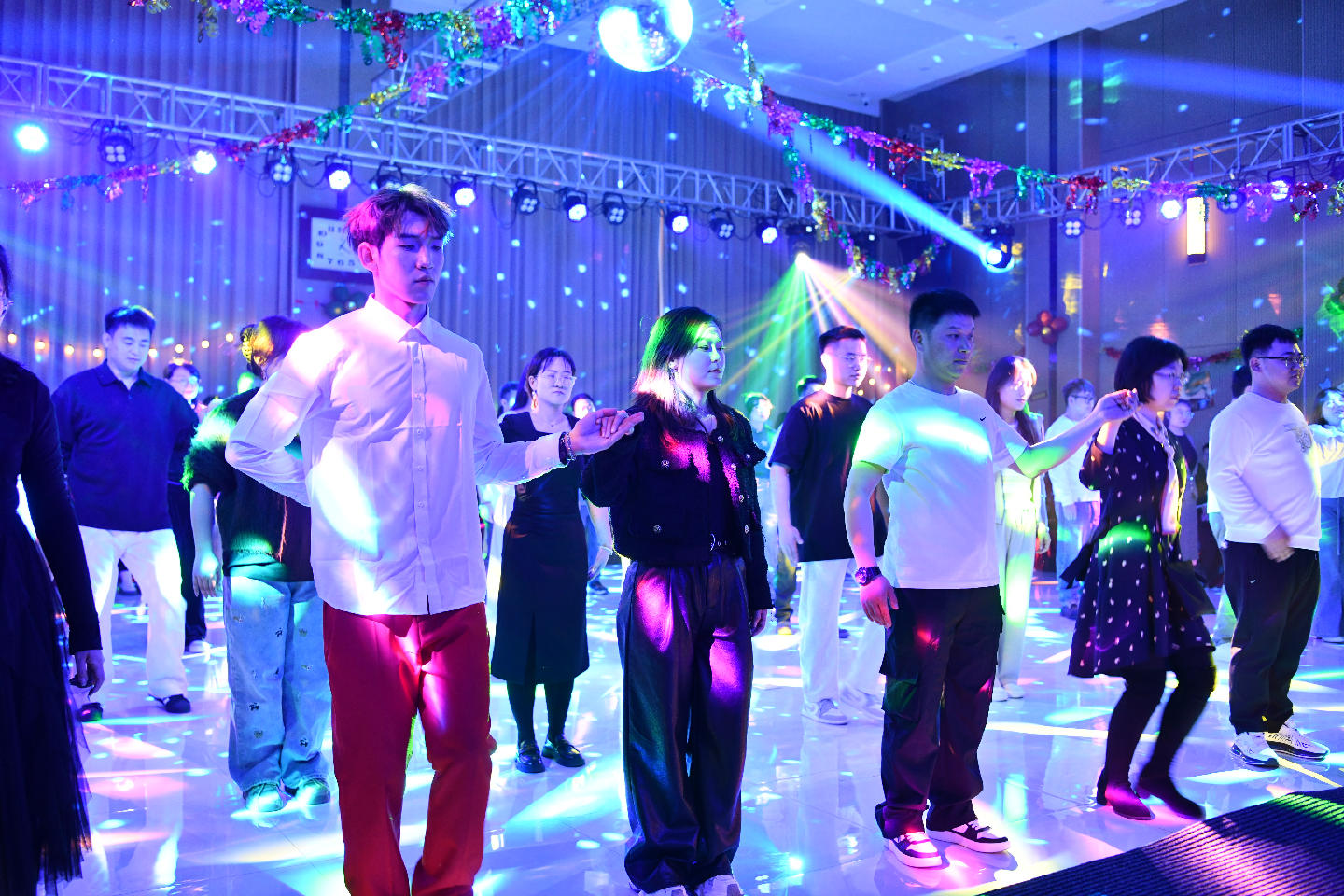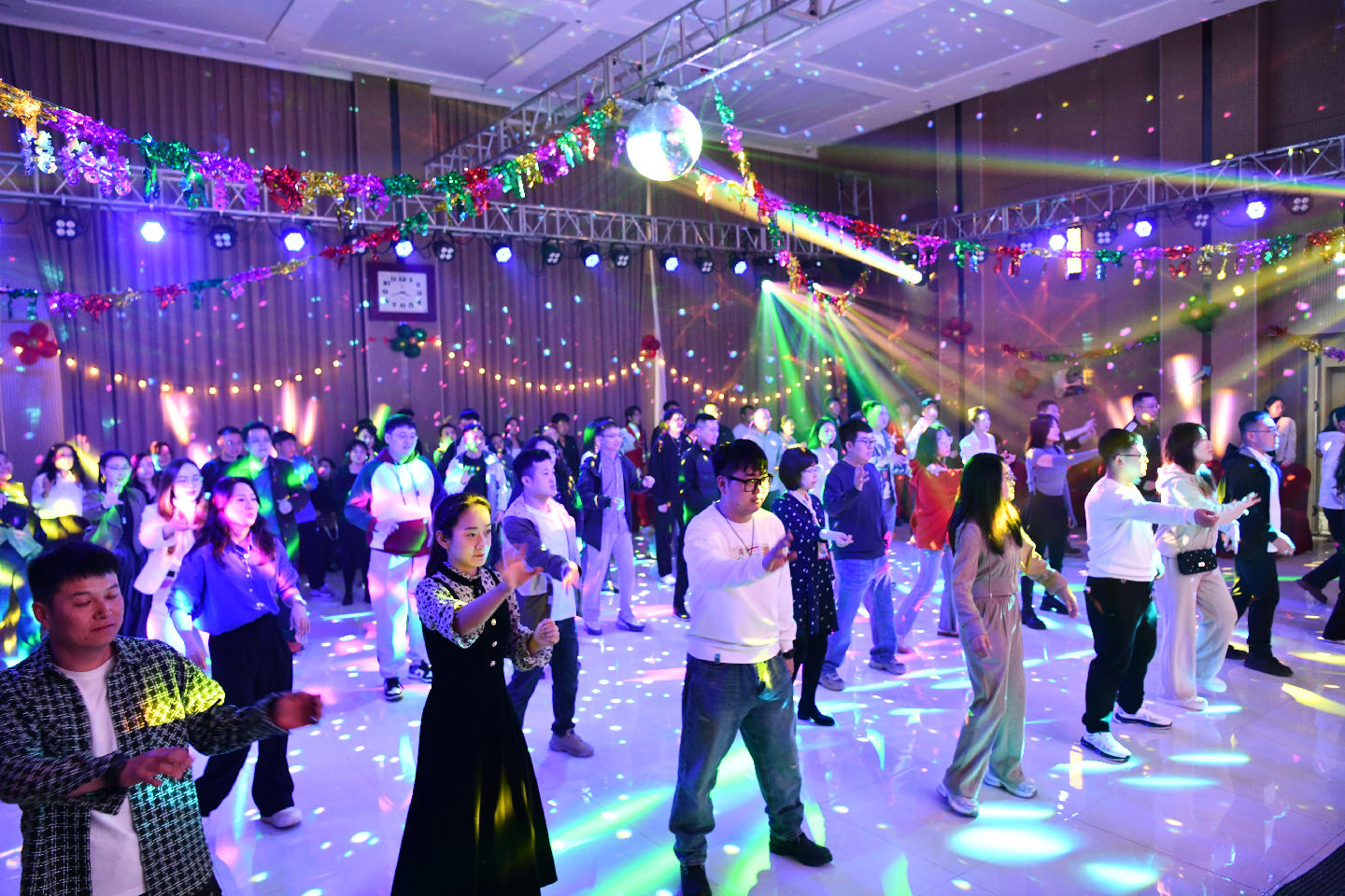 整场舞会由热场破冰、歌舞表演、舞步教学、集体展示4个环节相互穿插、徐徐推进,从单人跳的热身disco,到相互牵手配合的集体舞,再到一对一、面对面的慢三舞步,到最后自由邀约舞伴的浪漫华尔兹,舞蹈老师循序渐进地引导男女职工逐渐放下拘束,不断拉进距离。舞会氛围热闹愉悦,职工纷纷好评。