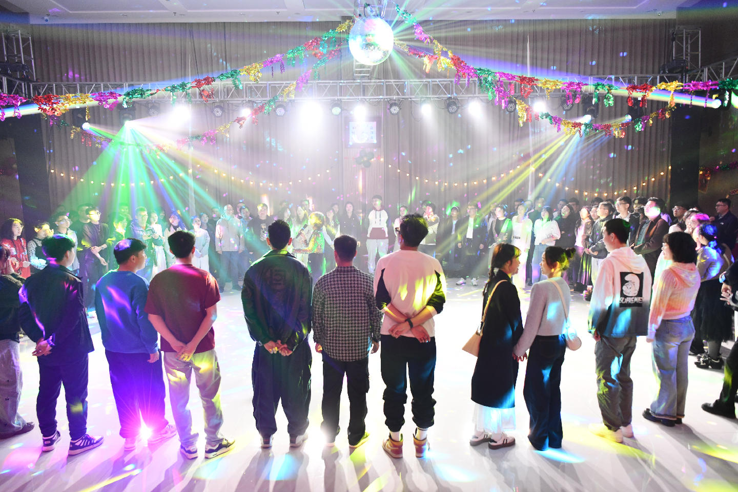 此次活动作为“时光穿梭”舞会系列的第3场活动,延续前2场的怀旧风格,以经典舞步disco、华尔兹,配合霓虹灯光、怀旧布景、经典音乐,共同唤醒上世纪末的时代记忆。