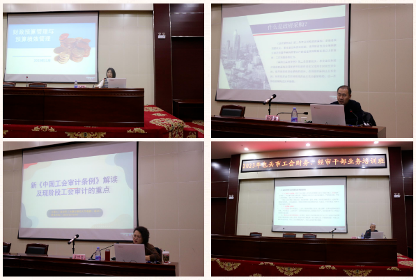 本次培训邀请了市财政局预算科二级主任科员格丽娃、市财政局采购科副科长杨富林、内蒙古财经大学会计学院审计系教授高岩芳和原自治区总工会财务部一级调研员高爱富,分别就预算和绩效管理、采购管理、《中国工会审计条例》、工会审计的重点内容及审计方法、基层工会收支管理、《工会会计制度》等方面进行了讲解,并进行了现场互动解答。