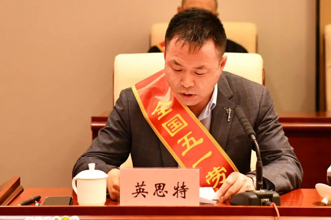全国五一劳动奖状获奖集体代表,包头市英思特稀磁新材料股份有限公司副总经理范立忠,围绕发挥示范引领作用,助力建设两个稀土基地进行交流发言