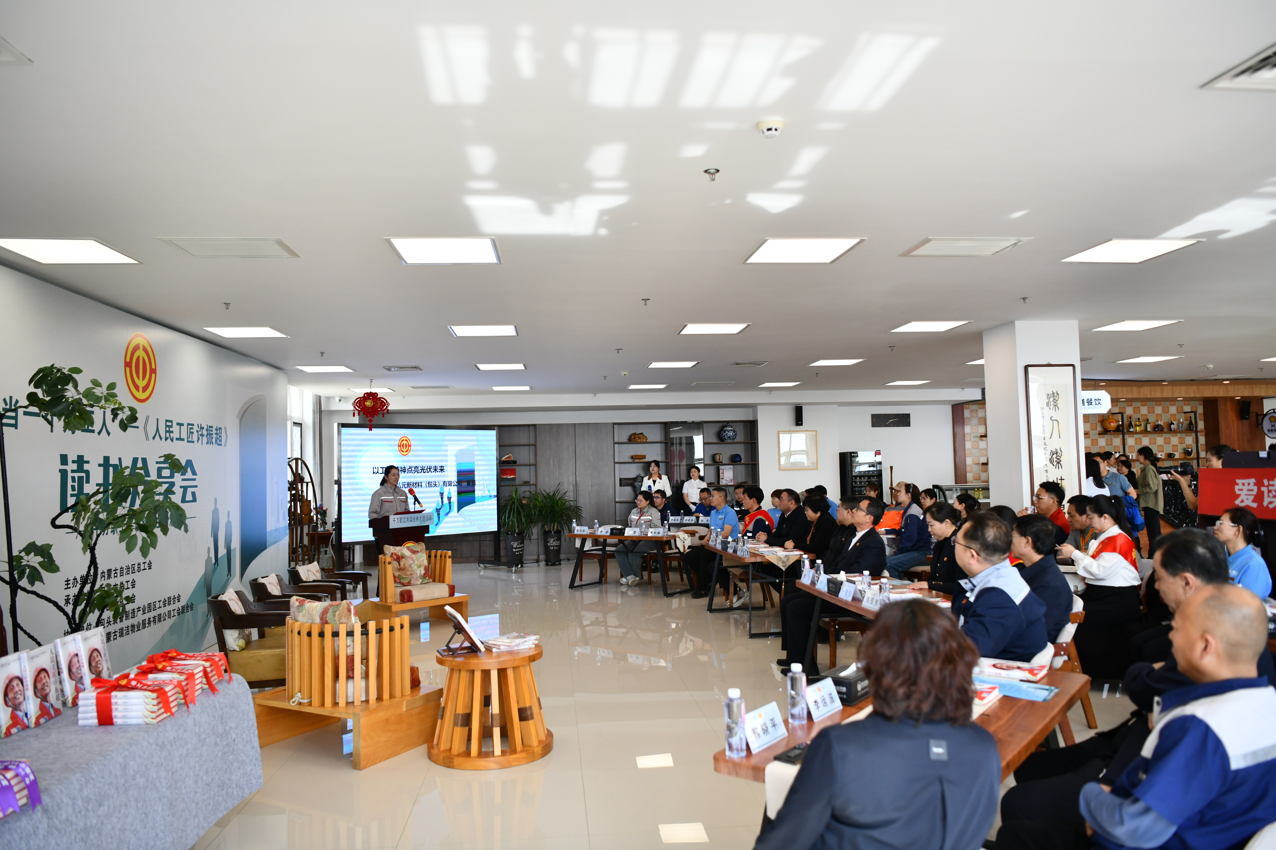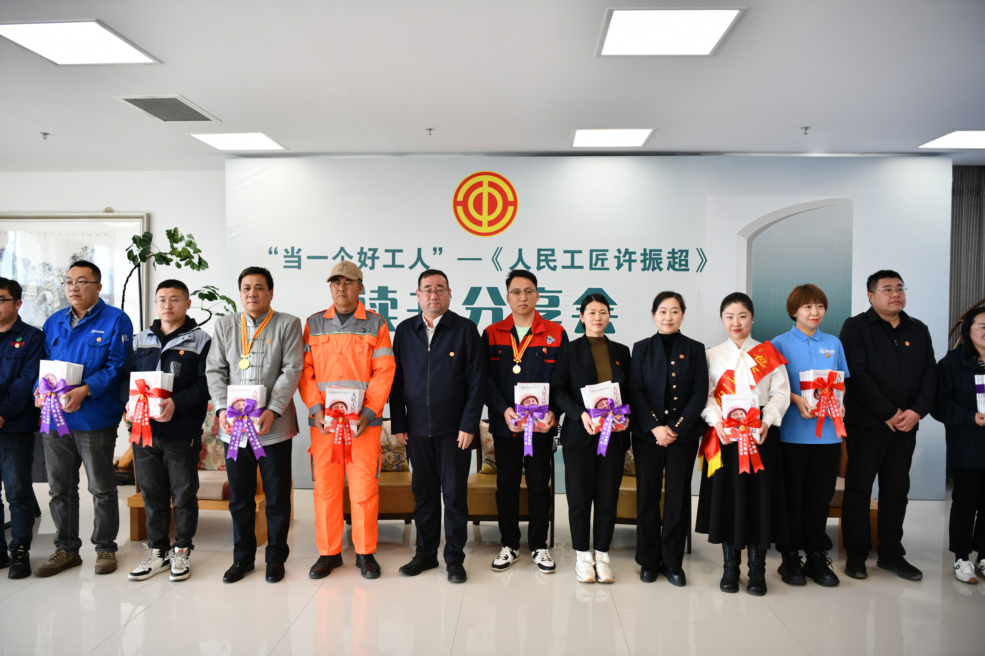 活动首先在瑞洁物业职工书屋举办了“千万职工共读经典”内蒙古地区主题活动,50余名新就业形态劳动者、劳模、工匠和一线职工等积极参与。分享中,来自不同岗位的3位讲述人围绕《人民工匠许振超》一书,结合自身工作成长经历畅谈了“三个精神”的生动实践和深刻内涵。在随后的职工领读和职工访谈中,现场职工结合原著纷纷分享各自的阅读体验,并围绕热点话题展开激烈讨论,现场气氛十分活跃。读书分享会上为参加活动的职工赠送了《人民工匠许振超》。