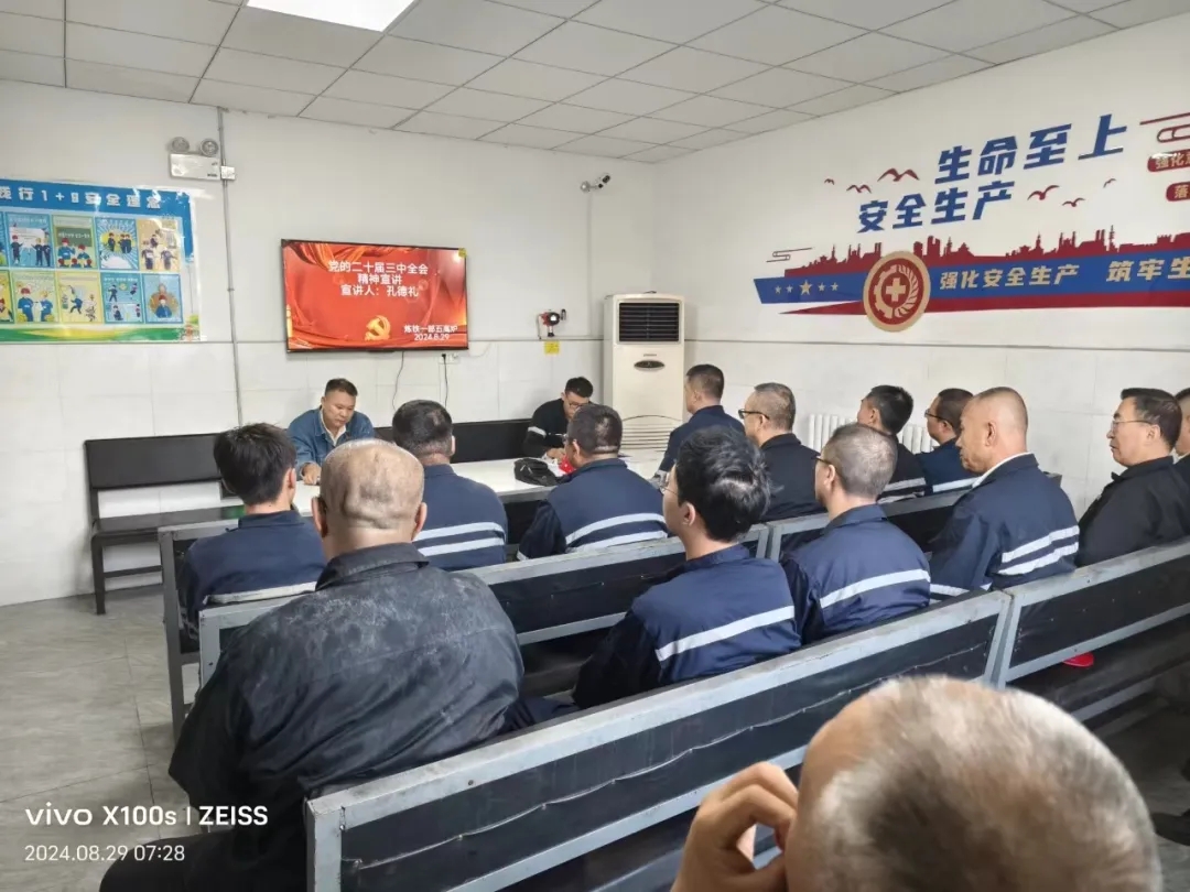 在班组里的班前会上,和工友们坐在一起,炉前大班长孔德礼和工友们讲起了他对党的二十届三中全会精神的理解。