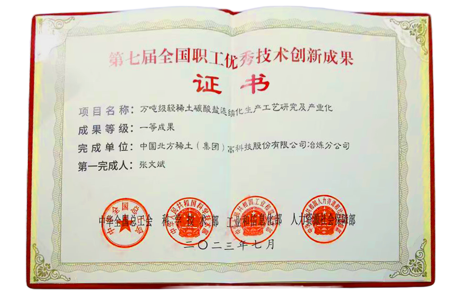 7月30日,为期三天的第二届大国工匠创新交流大会暨大国工匠论坛在京闭幕。闭幕式上,第七届全国职工优秀技术创新成果交流活动优秀成果发布,北方稀土冶炼分公司张文斌等人完成的《万吨级轻稀土碳酸盐连续化生产工艺研究及产业化》项目获评一等成果,并荣获首届“工匠路演”活动优秀项目奖。大会展台上,“万吨级轻稀土碳酸盐连续化生产线”模型在中华全国总工会、内蒙古自治区总工会两大展区显著位置同步展出,同时,“北疆工匠”邢岗事迹、轨梁厂菅瑞军创新工作室、动供总厂“五小”创新成果纷纷登上展台,包钢集团、北方稀土作为重点企业在展位宣传,吸引线上线下观展人员关注的目光。