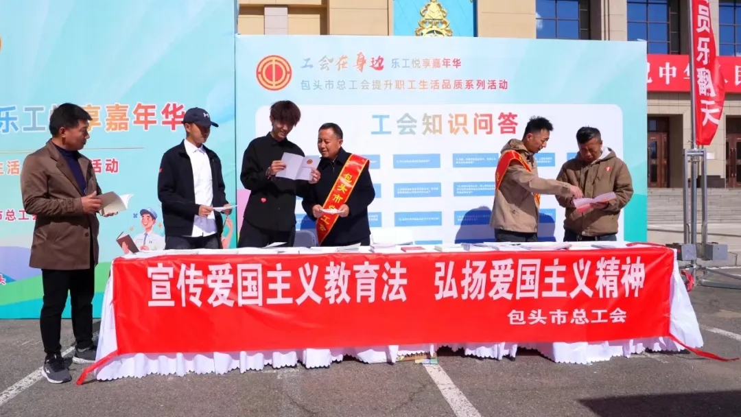 为深入推进《中华人民共和国爱国主义教育法》的实施,10月1日在中华人民共和国成立75周年之际,包头市总工会在第一工人文化宫开展以“宣传爱国主义教育法 弘扬爱国主义精神”为主题的爱国法治宣传活动。