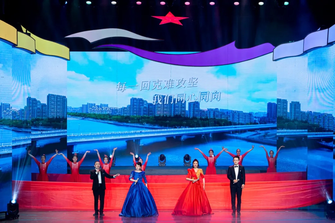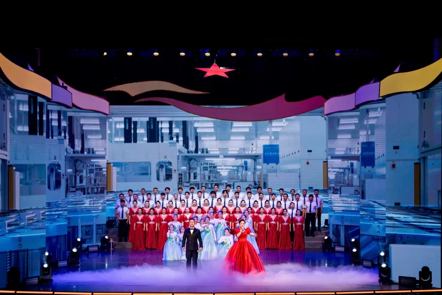 伴随着铿锵有力的节奏,身着工装的包钢职工演员们表演开始了。《草原晨曲》、《咱们工人有力量》慷慨激昂的情景歌舞带观众们回忆了包头建设一路筚路蓝缕的奋进史,他们以嘹亮的歌声和豪迈的动作,展现出劳动者坚韧不拔、勇往直前的精神风貌。《时代号子》展现了包头市公交运输集团职工们响应时代号召,担当起服务人民群众的时代使命。一机集团的无伴奏合唱《天边》演绎了内蒙古多元文化的和谐共生,传递出民族团结的深情厚谊。情景演唱《理科生的文艺范》表达了对包头的城市热爱,彰显了包头广大教师职工对城市美好生活的祝福。最后,演出在全体观众齐声高唱《爱满包头》的歌声中圆满落幕。
